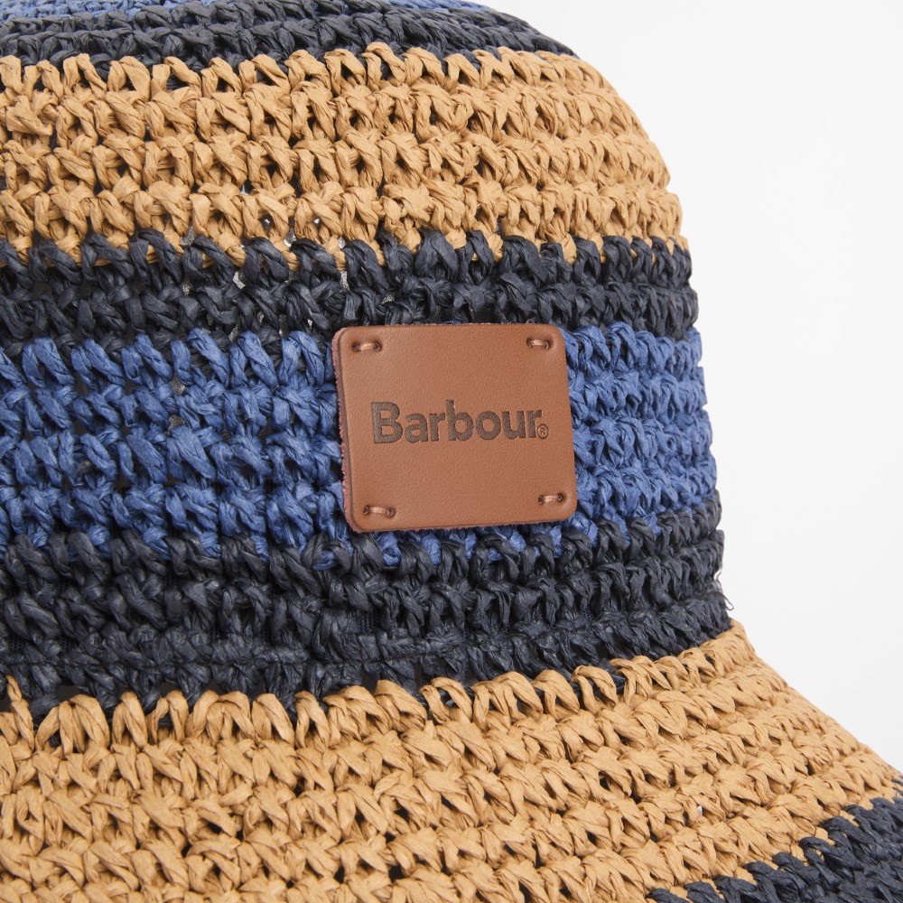 The Barbour Josie Crochet Hat is a lightweight cloche-style summer hat crafted with a crochet-effect weave and an all-over stripe design. Featuring a large Barbour embossed PU patch at the centre front and internal logo tape, it combines heritage-inspired detailing with sun-ready functionality, offering a stylish and practical summer accessory.