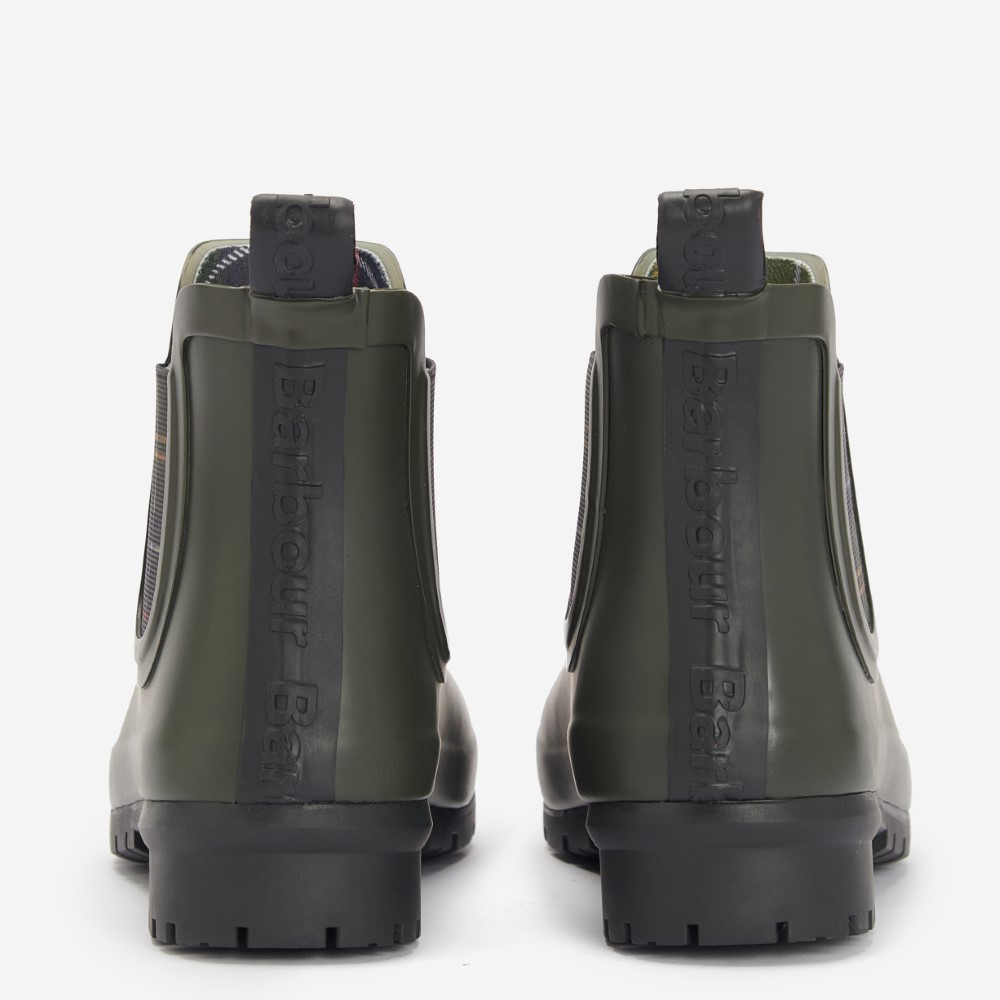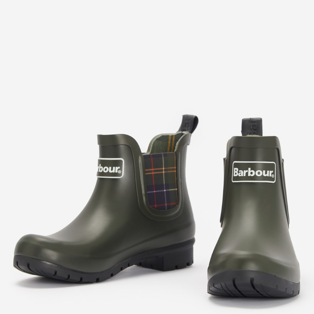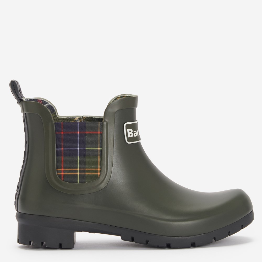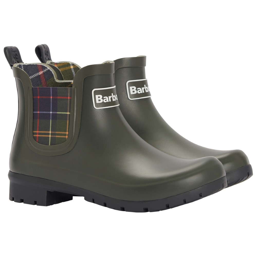 The Barbour Kingham wellingtons are styled in a Chelsea boot inspired style. Featuring a classic tartan elastic gusset, these boots are perfect for country walks in style.