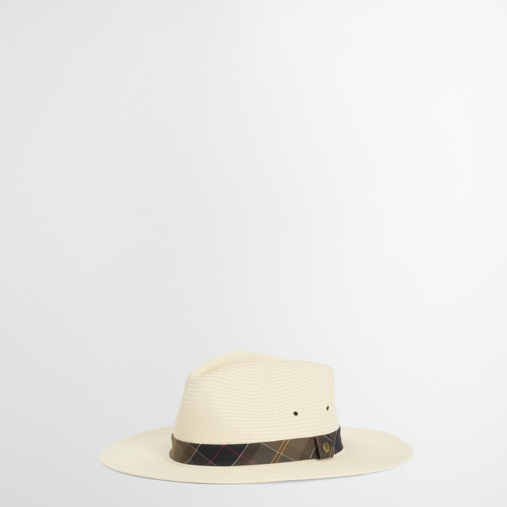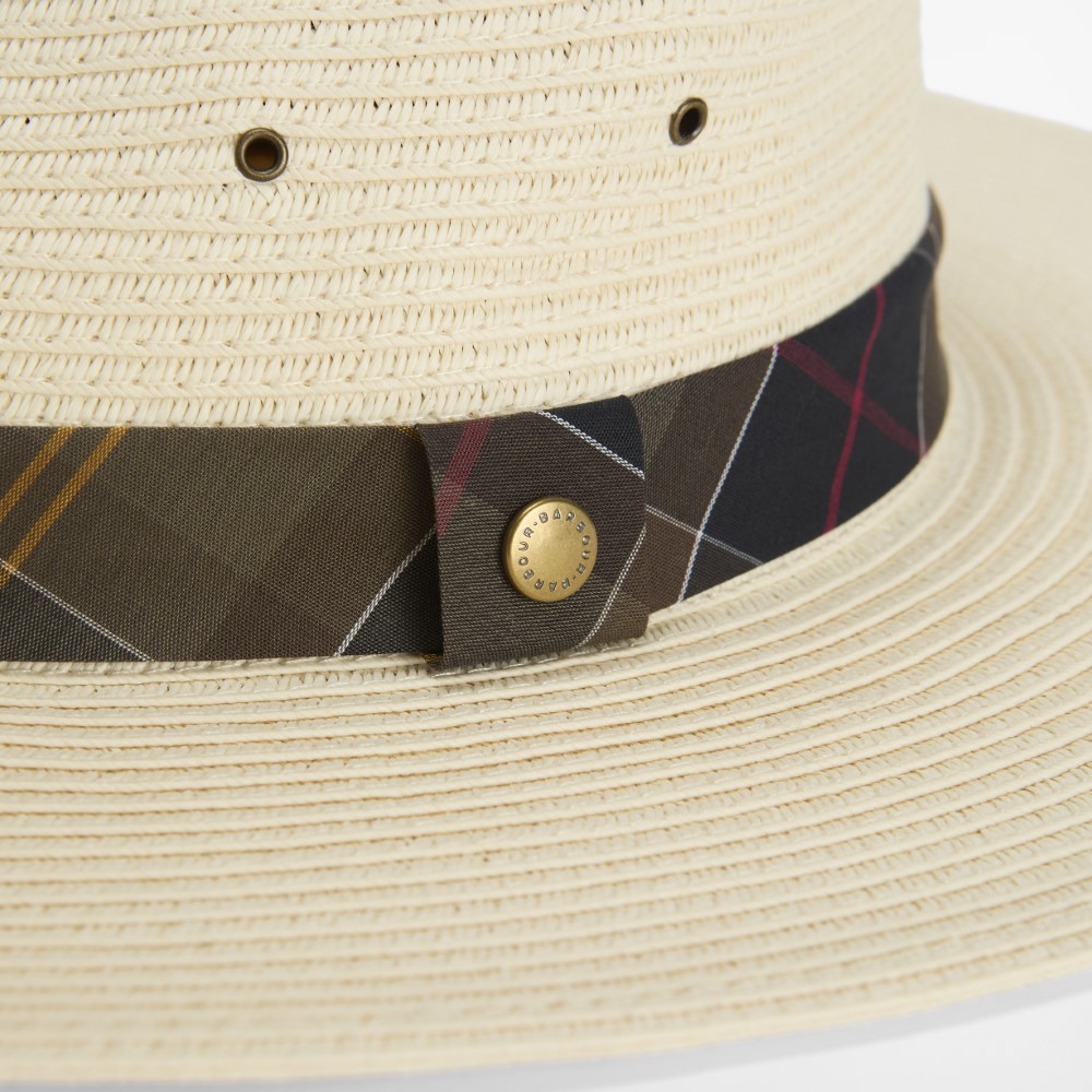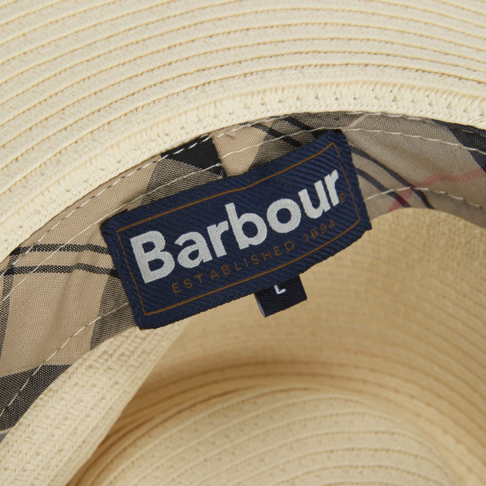 The Barbour Kirkstone Fedora Summer Hat is a classic braid-fedora featuring both external and internal Barbour tartan bands. Designed with a removable, adjustable chin strap and a branded stud on the wearer’s left side, it offers sun protection of +40 while combining heritage styling with practical summer-ready functionality.