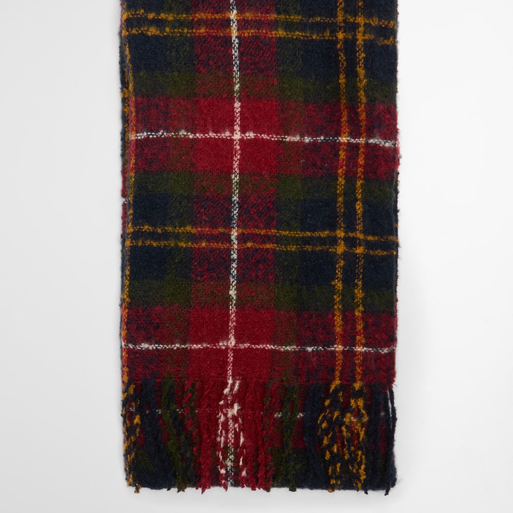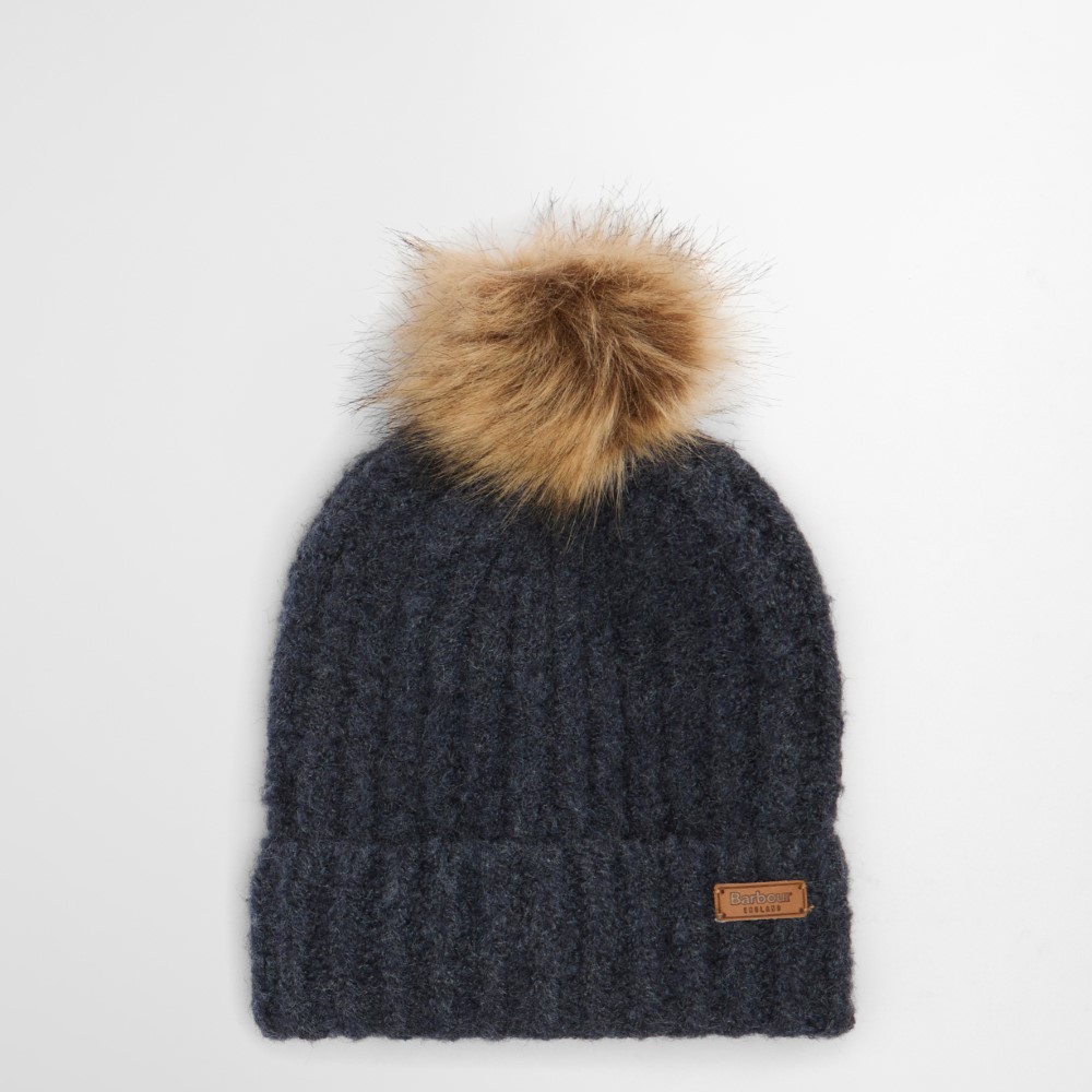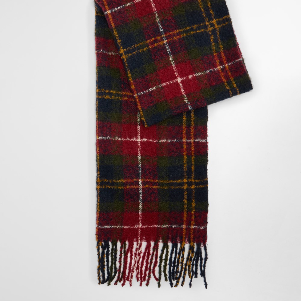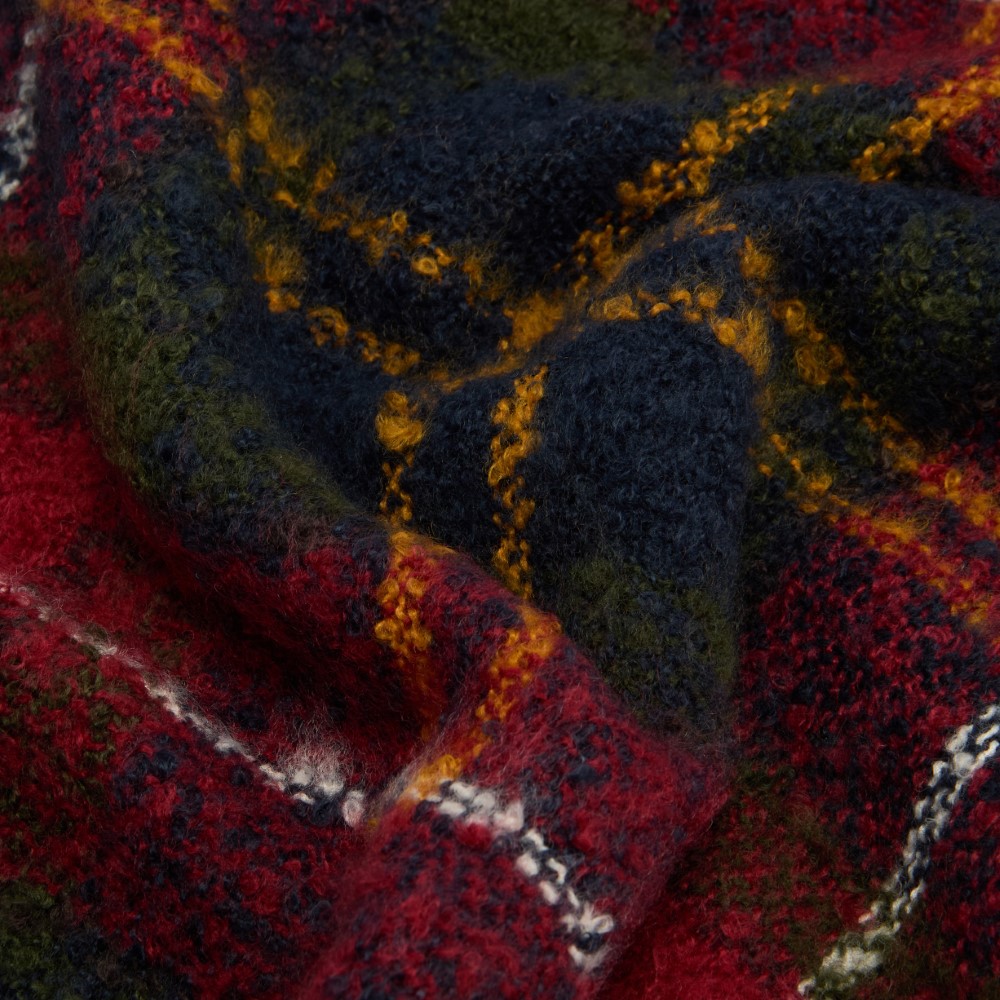 The Barbour Saltburn Beanie and Boucle Scarf gift set features a faux fur pom and tartan boucle scarf with tassels for the perfect present.