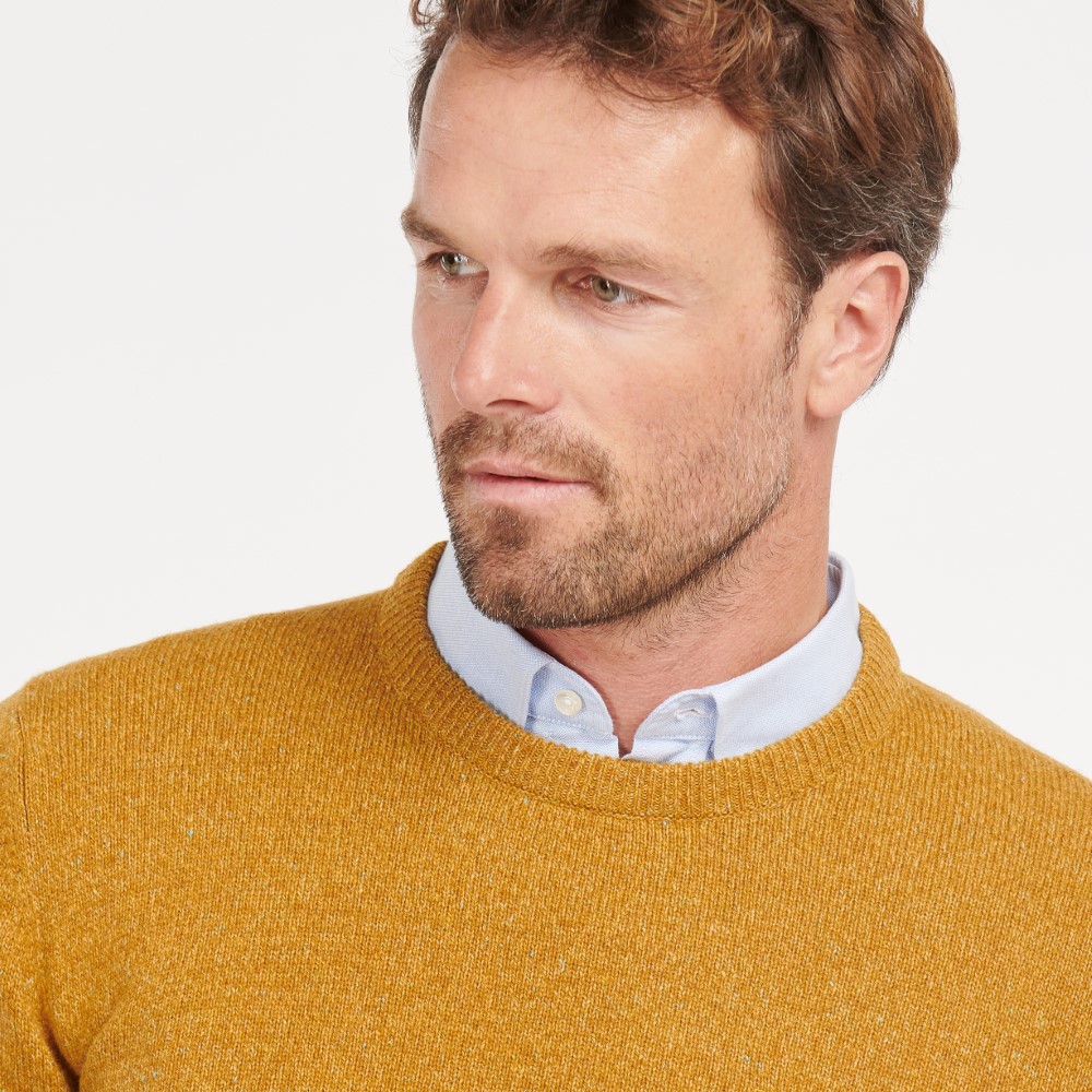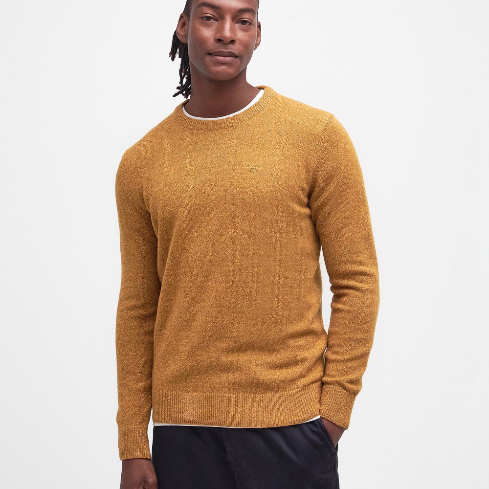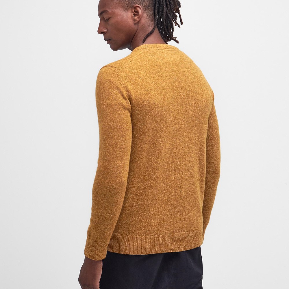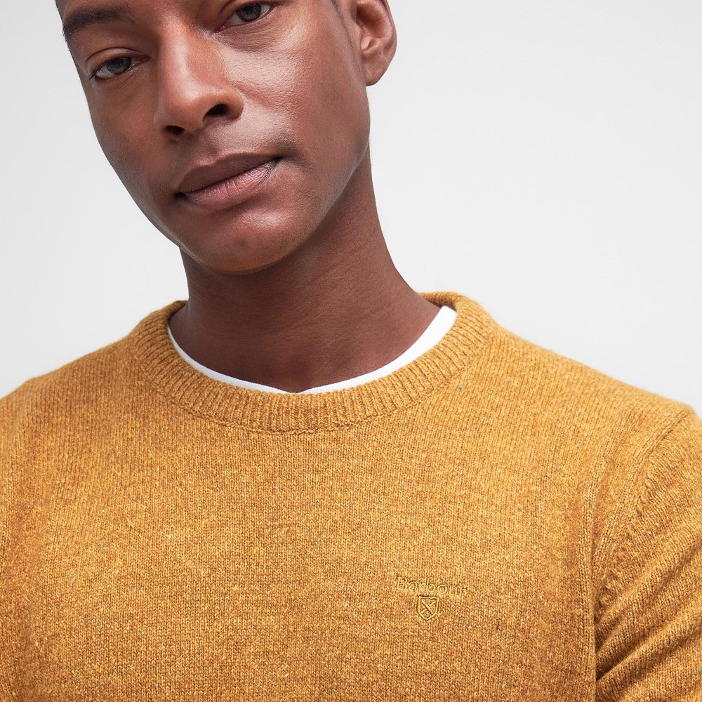 is crafted in tweed-fleck yarn that’s rich in wool and contains a dash